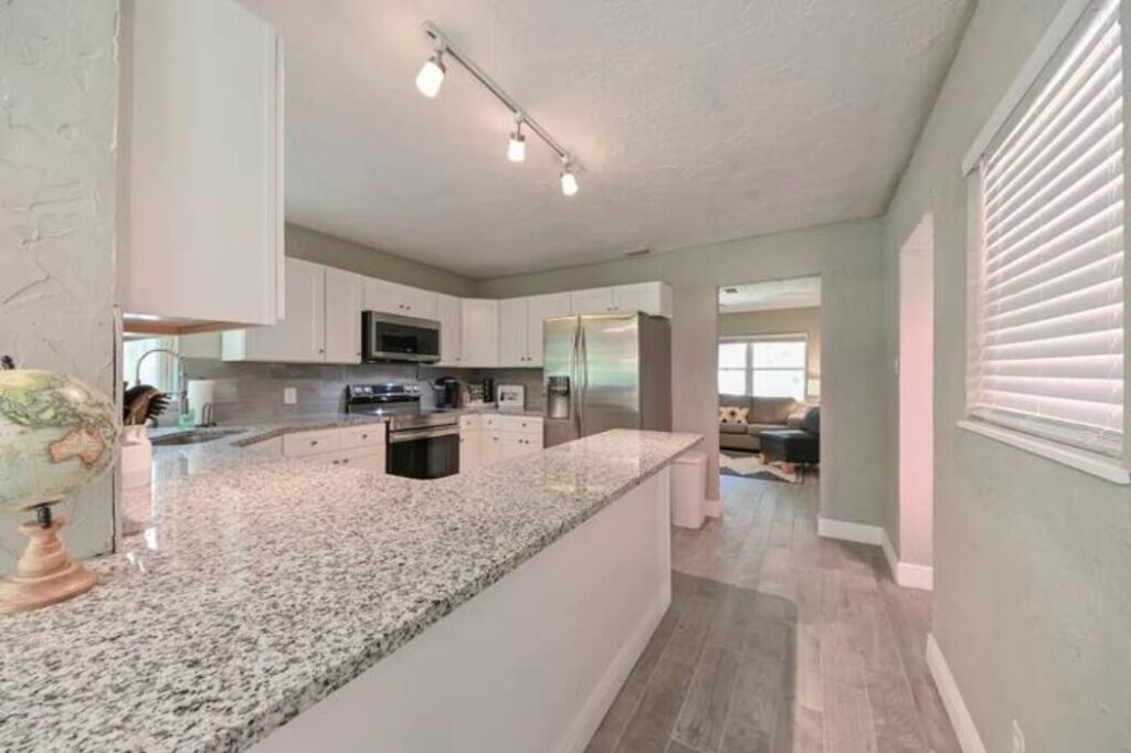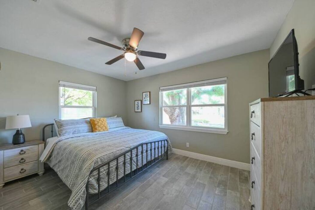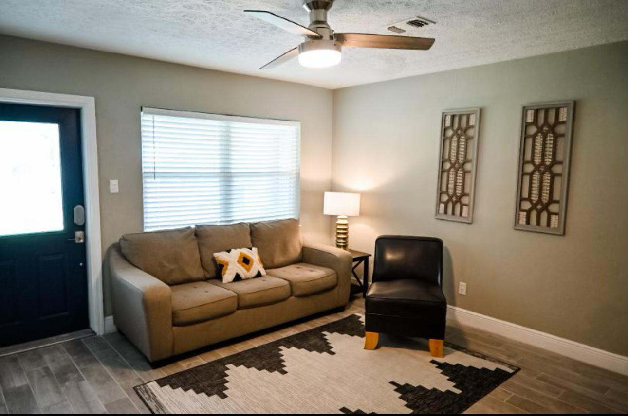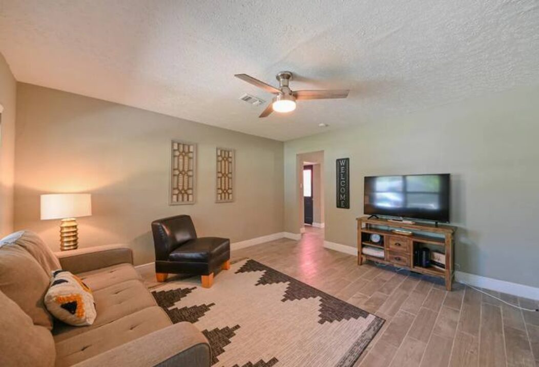 A delightful 3-bedroom, 1.5-bathroom single-family home offering approximately 1,712 sq ft of living space, this corner‑lot residence is beautifully shaded by mature oak trees, creating a tranquil and inviting setting. Inside, you’ll find a spacious kitchen with abundant cabinet space, in‑unit washer and dryer, central air conditioning, ceiling fans, available furnished or unfurnished.